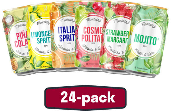 Yleisön pyynnöstä teimme tuotteen josta löytyy neljä erilaista Mocktails makua! Myynnissä rajoitetun ajan. Laatikosta löytyvät seuraavat tuotteet: